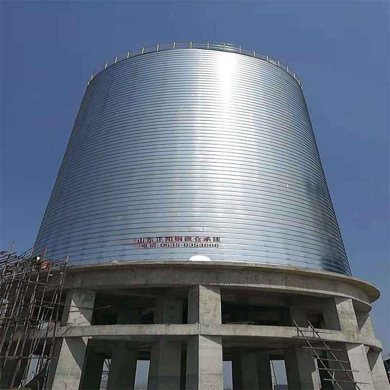 1;钢板仓在建造过程中,完全由专用设备施工,螺旋咬合钢板仓专用设备由承载机架、开卷机、弯折机和成型机组成,在卷制过程中,将495 mm宽的卷板送入成型机扎制成所需的几何形状,再通过折弯机弯折、咬口、仓体外壁咬制成一条五倍于材料厚度 30mm-40mm宽的螺旋凸条,大大加强了仓体的承载能力,使钢板仓的整体强度、稳定性、抗震性优于其它池罐。另外,利蒲仓采用的材料是防腐性能特别强的镀锌钢板,利浦钢板仓的仓体直径在5---20m以内选择,高度可在30m以下选用,这使得它的寿命也比其它池罐长。